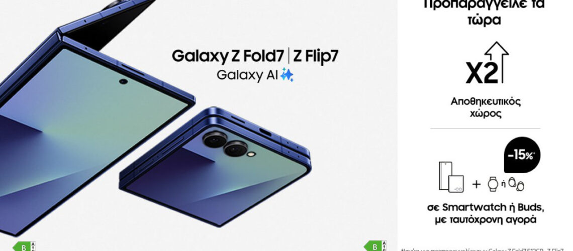 Τα πολυαναμενόμενα smartphones Samsung Galaxy Z Fold7 | Galaxy Z Flip7 | Galaxy Z Flip7 FE εγκαινιάζουν μια νέα εποχή στην εμπειρία χρήσης smartphone, ενσωματώνοντας προηγμένες λειτουργίες τεχνητής νοημοσύνης και κορυφαία χαρακτηριστικά σχεδιασμού και απόδοσης. Αποτελούν την ιδανική πρόταση για όσους αγαπούν τα social media, τη φωτογραφία και την υψηλής ποιότητας ψυχαγωγία, προσφέροντας κορυφαίες επιδόσεις, premium κατασκευή και μοναδικές δυνατότητες AI.