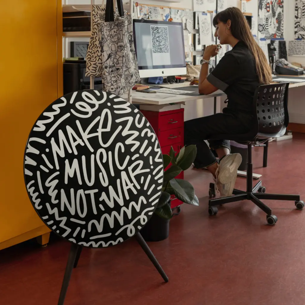 Η ανανεωμένη αυτή έκδοση είναι επενδυμένη με το ύφασμα Centennial Cadence της Kvadrat, ένα τολμηρό πλέγμα σε αποχρώσεις Century Blue και Chestnut Brown, που προσδίδει μια δυναμική και σύγχρονη αισθητική. Ο δίσκος από φυσικό αλουμίνιο και τα πόδια διαθέτουν βουρτσισμένο φινίρισμα εμπνευσμένο από την παράδοση, παραπέμποντας στην εμβληματική αισθητική της Bang & Olufsen της δεκαετίας του 1980. Το χαραγμένο επετειακό λογότυπο τιμά το διαχρονικό όραμα των ιδρυτών, ενώ τα εντυπωσιακά πόδια και τα καλώδια σε απόχρωση Century Blue προσθέτουν μια ζωντανή, κομψή πινελιά στο συνολικό σχεδιασμό.