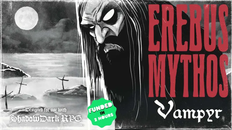 Ένα πολύ ενδιαφέρον ελληνικό project τρέχει αυτή τη στιγμή την Kickstarter καμπάνια του και ιδίως αν σας αρέσουν τα επιτραπέζια RPG, τότε καλό θα ήταν να ρίξετε μια ματιά στην επίσημη σελίδα του. Μιλάμε για το Erebus Mythos: Vampyr, που εμπνέεται από την ελληνική λαογραφία, από παλιούς μύθους για βρικόλακες και από παράξενα γεγονότα που καταγράφηκαν στο χωριό του Σοφικού Κορινθίας το 1846.
