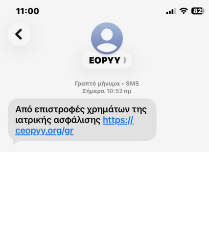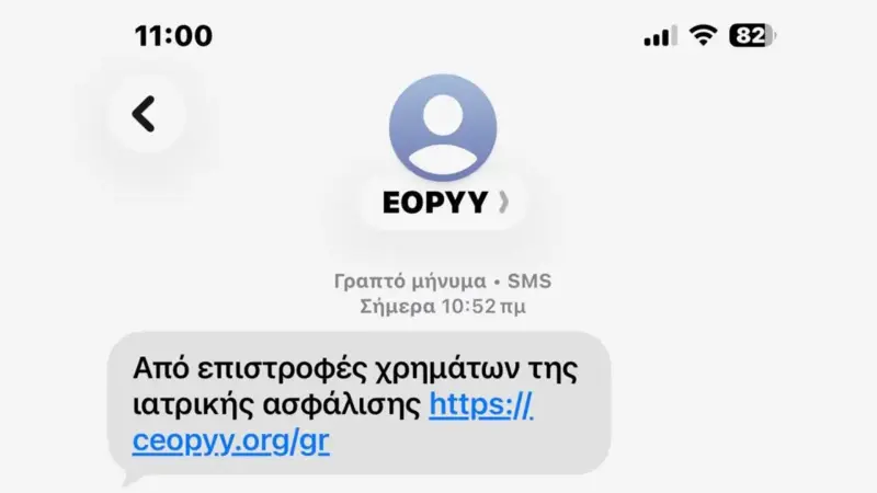 Τα εν λόγω μηνύματα εμφανίζονται ως ειδοποιήσεις που φαινομενικά προέρχονται από τον Εθνικό Οργανισμό Παροχής Υπηρεσιών Υγείας (ΕΟΠΥΥ) και υπόσχονται επιστροφή χρημάτων στους παραλήπτες.