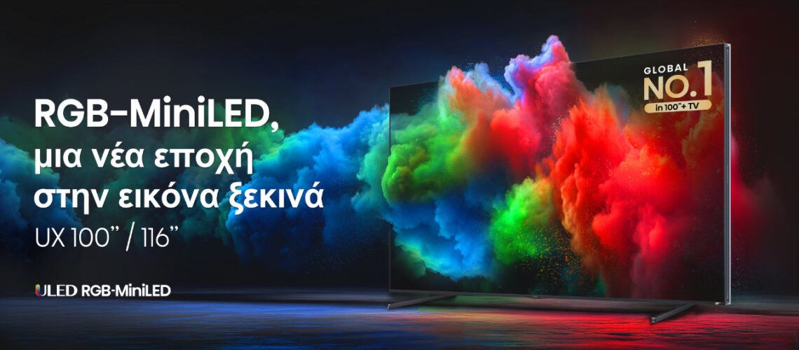 Η RGB MiniLED 116’’ είναι τώρα διαθέσιμη για επίσκεψη και δοκιμή στο κατάστημα Πλαίσιο στο Εμπορικό Πάρκο του Αεροδρομίου Αθηνών, δίνοντας σε κάθε επισκέπτη την ευκαιρία να ζήσει από κοντά μια τηλεόραση που θέτει νέα πρότυπα στην οικιακή ψυχαγωγία.