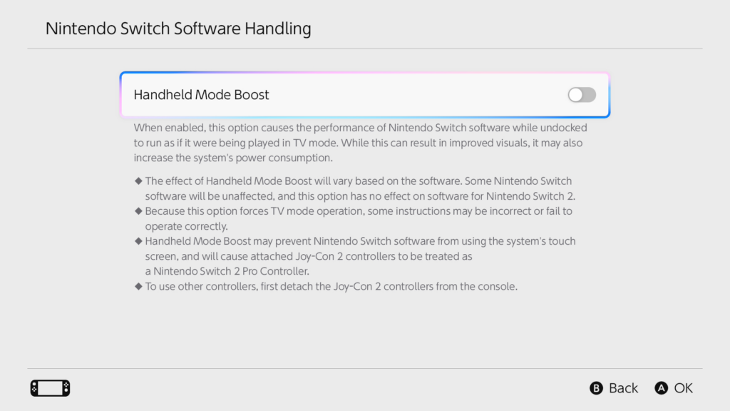 Η μεγαλύτερη νέα λειτουργία είναι το “Handheld Mode Boost”! Η Nintendo φέρνει ένα νέο χαρακτηριστικό που κάνει συμβατά παιχνίδια του Switch να τρέχουν ακόμη καλύτερα σε handheld mode, σαν να βρίσκονται σε docked mode.