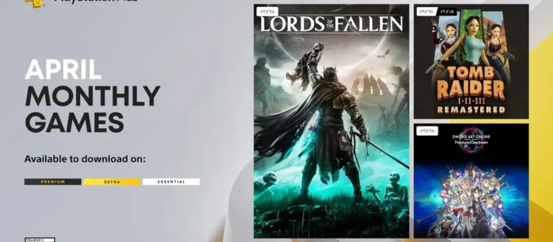 Τα δωρεάν παιχνίδια του PlayStation Plus για τον Απρίλιο του 2026 είναι το action-RPG Lords of the Fallen(αποκλειστικά για PS5), η συλλογή Tomb Raider I-III Remastered (για PS4 και PS5) και το multiplayer co-op Sword Art Online Fractured Daydream (για PS5). Η προσθήκη αυτών των τίτλων στη βαθμίδα Essential καλύπτει ένα ευρύ φάσμα προτιμήσεων, από απαιτητικές single-player εμπειρίες μέχρι μαζικά διαδικτυακά raids.