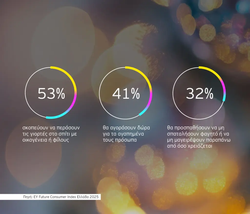 Οριακά αυξημένη σε σχέση με πέρσι εμφανίζεται η πρόθεση των Ελλήνων καταναλωτών για αγορές στη διάρκεια της εορταστικής περιόδου του 2025, ενώ η τιμή παραμένει το κυρίαρχο κριτήριο κατά την περίοδο αυτή. Αυτό προκύπτει από την πρώτη επεξεργασία των ευρημάτων της μεγάλης έρευνας της ΕΥ Ελλάδος σε συνεργασία με την MRB και την Choose Communications, με τίτλο, EY Future Consumer Index Ελλάδα 2025, η οποία θα παρουσιαστεί στο σύνολό της τον Δεκέμβριο.