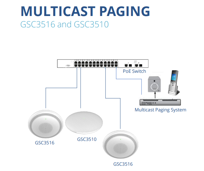 Το GSC3506 είναι σχεδιασμένο για paging και ανακοινώσεις σε εσωτερικούς χώρους, όπου ο ήχος πρέπει να είναι καθαρός και αξιόπιστος. Σε σχολεία, νοσοκομεία ή γραφεία, χρησιμοποιείται για μαζικές ανακοινώσεις ή ειδοποιήσεις, υποστηρίζοντας multicast paging για ταυτόχρονη μετάδοση σε πολλές ζώνες. Ο ενσωματωμένος ενισχυτής και η υποστήριξη SIP και multicast το καθιστούν ιδανικό για οργανωμένη, κεντρική επικοινωνία.