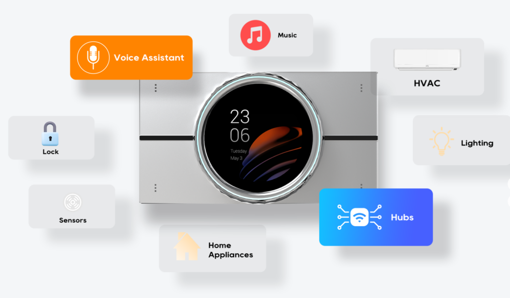 Υποστηρίζει Wi-Fi και Bluetooth, επιτρέποντας ευέλικτη εγκατάσταση χωρίς περιορισμούς καλωδίωσης. Παράλληλα, η ενσωμάτωση με πρωτόκολλα αυτοματισμού όπως Zigbee δίνει τη δυνατότητα σύνδεσης με φωτισμό, αισθητήρες, ρελέ, θερμοστάτες και άλλες smart συσκευές.