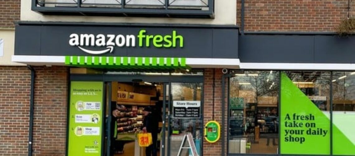 Η Amazon άνοιξε το πρώτο κατάστημα Fresh το 2021 στο Ealing του δυτικού Λονδίνου, όπου οι πελάτες μπορούσαν να βγουν με τα ψώνια τους χωρίς να περάσουν από ταμείο αφού κάθε προϊόν που έβαζαν στο καλάθι τους σαρωνόταν από κάμερες και αισθητήρες και η πληρωμή γινόταν με χρέωση συνδεδεμένου στη σχετική υπηρεσία τραπεζικού λογαριασμού.
