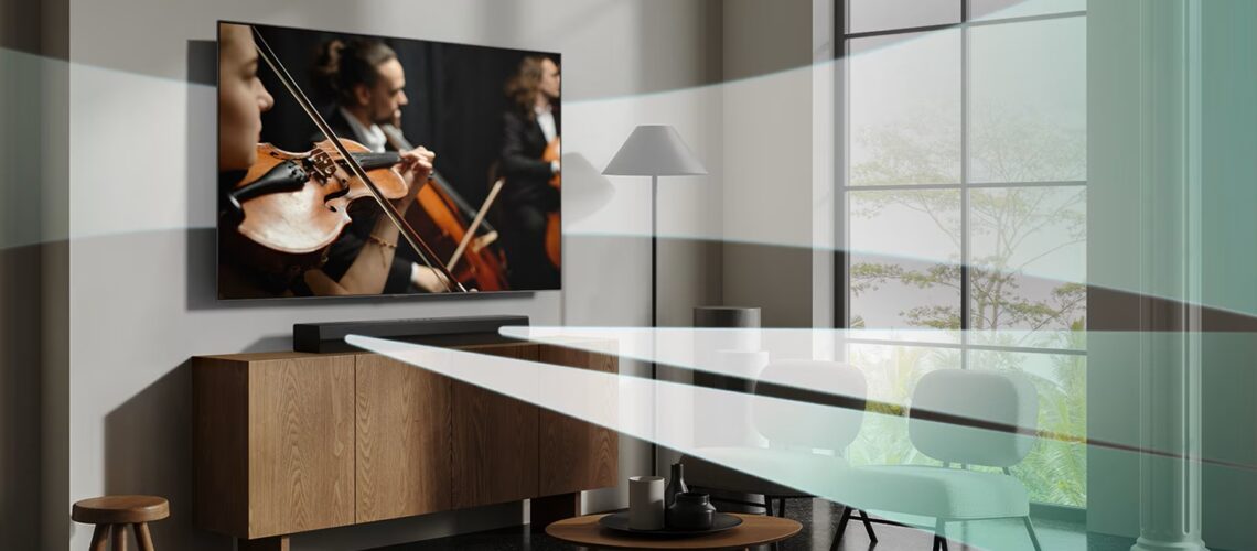 - AI Sound Pro – Το soundbar αναλύει αυτόματα το είδος του περιεχομένου και επιλέγει ανάμεσα σε τρεις βελτιστοποιημένες λειτουργίες, ώστε μουσική, ομιλία και κινηματογραφικός ήχος να παίζουν κάθε φορά με τις σωστές ρυθμίσεις.