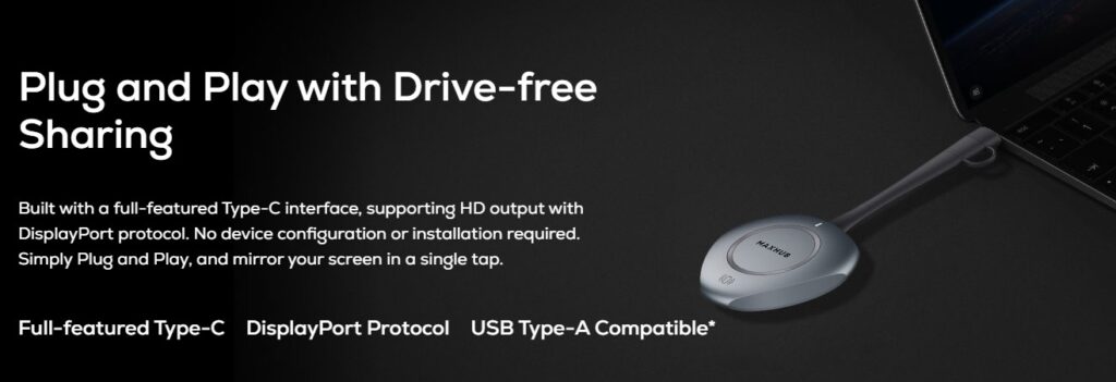 Με plug and play λειτουργία, το Wireless Dongle WT13M συνδέεται απευθείας με USB-C και επιτρέπει ασύρματο screen sharing χωρίς drivers ή εγκατάσταση εφαρμογών. Αυτό δεν προσφέρει μόνο ευκολία, αλλά και αυξημένη ασφάλεια, καθώς αποφεύγεται η εγκατάσταση λογισμικού σε εταιρικές συσκευές.