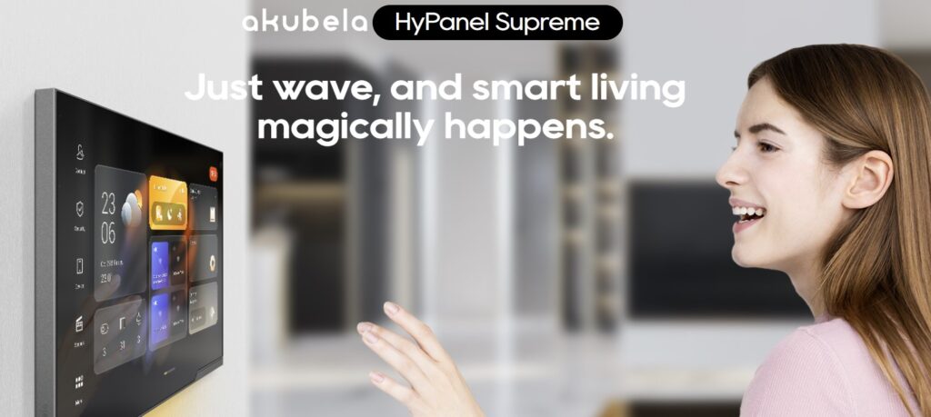 Στον τοίχο, εκεί που πριν υπήρχε μόνο ένας διακόπτης, βρίσκεται το HyPanel Supreme. Η μεταλλική του πρόσοψη εναρμονίζεται με το περιβάλλον, ενώ η οθόνη αφής 12.35″ ξυπνά μόλις πλησιάσεις. Δεν τραβάει την προσοχή. Δεν δείχνει “έξυπνο”. Είναι απλώς εκεί, όταν το χρειάζεσαι.