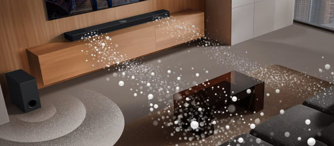 Η εμπειρία ξεκινά με ήχο surround 2.1 καναλιών και συνολική ισχύ 300W,  για ρεαλιστικά ηχητικά τοπία, είτε βλέπετε ταινίες είτε ακούτε μουσική. Με το AI Sound Pro, το soundbar προσαρμόζεται αυτόματα στο περιεχόμενο και στη διάθεση της στιγμής. Με την ανίχνευση περιεχομένου από μια ευρεία γκάμα ειδών, το AI Sound Pro αναλύει σε πραγματικό χρόνο τις ανάγκες κάθε σκηνής και εφαρμόζει ιδανικές ρυθμίσεις για πιο καθαρό και δυναμικό ήχο.