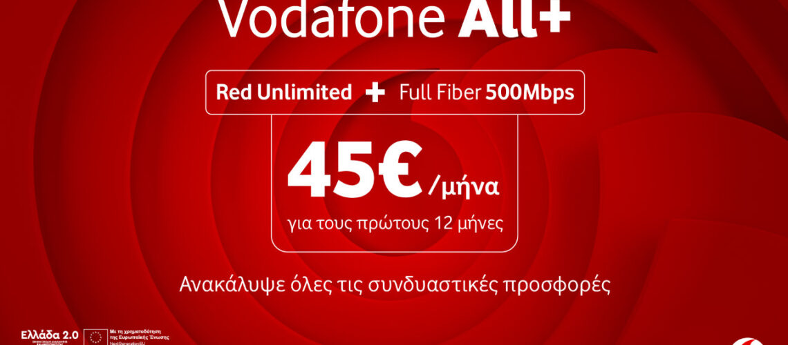 Vodafone Full Fiber 500Mbps και Vodafone Red Unlimited, με 45€/μήνα για 12 μήνες